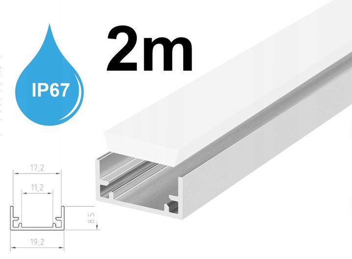 Profil alu hermetyczny IP67 + klosz 2m do taśm led