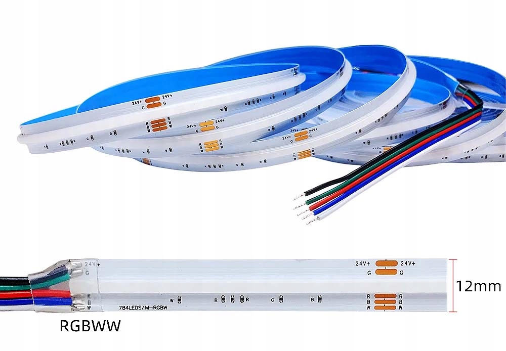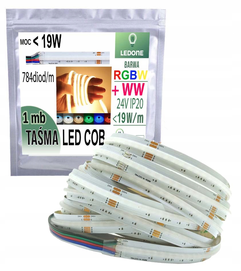 Taśma LED COB 784diod linia światła RGBW + WW ciepła 24V <19w/m