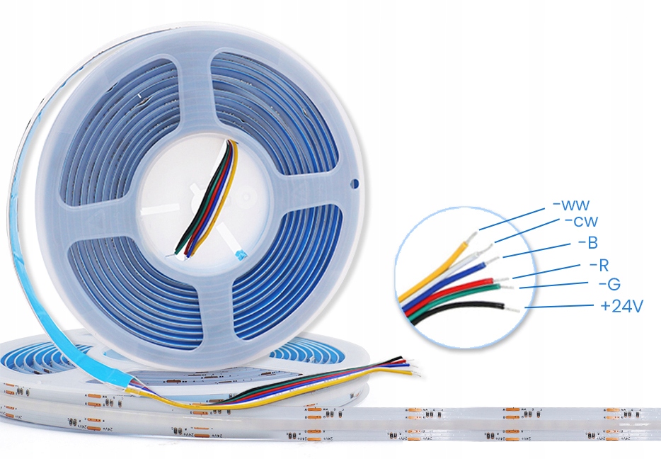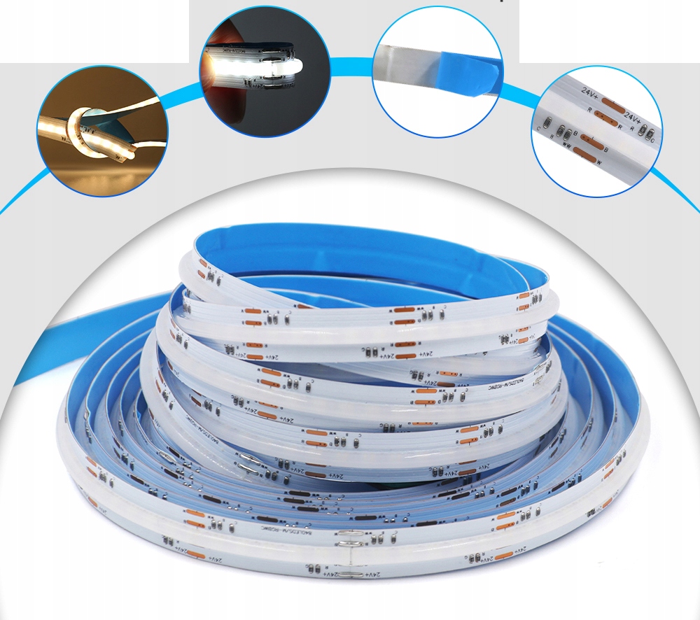 TAŚMA LED COB LINIA ŚWIATŁA RGB + CCT 24V < 20w/m rolka 5m RGBW