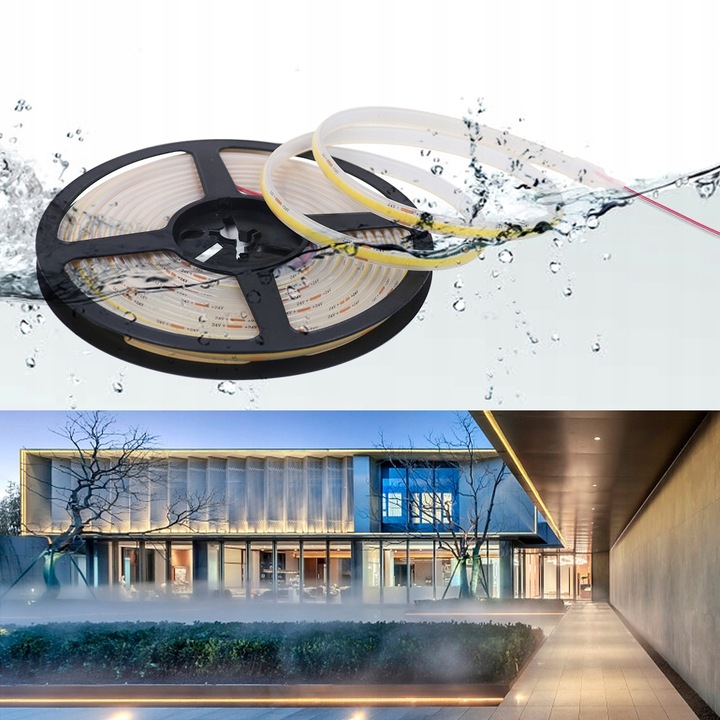 Oferujemy profesjonalną taśmę LED COB w osłonie termococon, idealną do zastosowań w miejscach narażonych na wilgoć, takich jak sauny, łazienki, baseny, oczka wodne, elewacje itp.